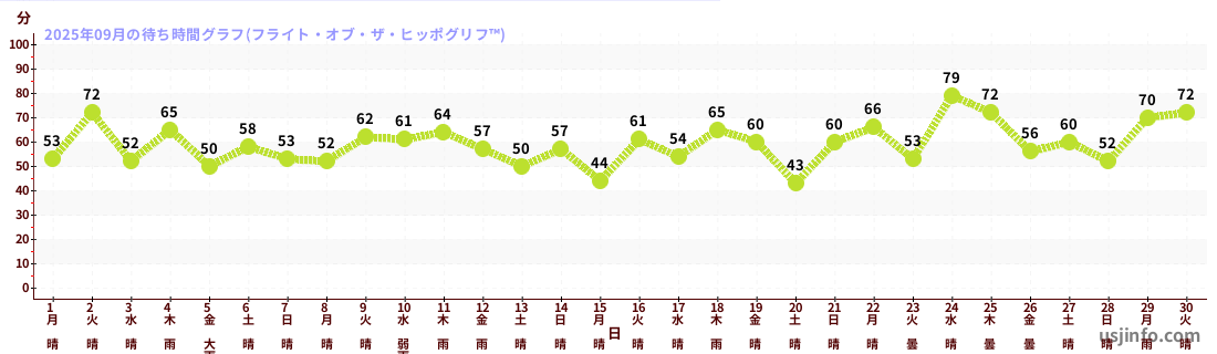 • フライト・オブ・ザ・ヒッポグリフ™$B$N(B2025年09月01日のの一日平均待ち時間