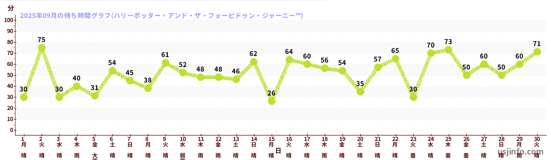 • ハリーポッター・アンド・ザ・フォービドゥン・ジャーニー™$B$N(B2025年09月01日のの一日平均待ち時間
