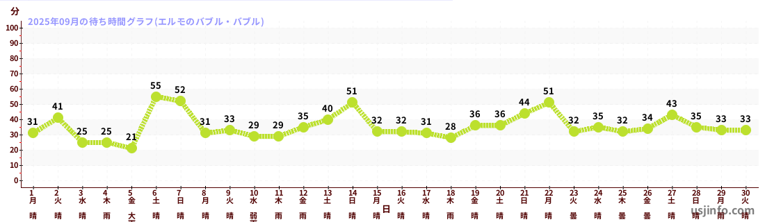 • エルモのバブル・バブル$B$N(B2025年09月01日のの一日平均待ち時間