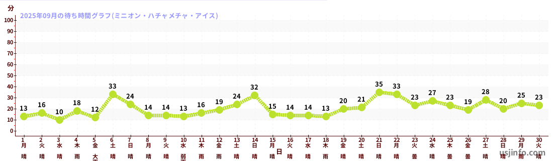 • ミニオン・ハチャメチャ・アイス$B$N(B2025年09月01日のの一日平均待ち時間