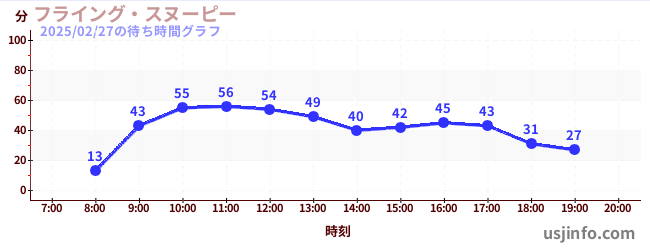 • フライング・スヌーピー$B$N(B2025年02月27日の待ち時間
