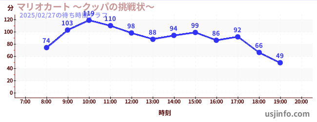 • マリオカート ~クッパの挑戦状~$B$N(B2025年02月27日の待ち時間
