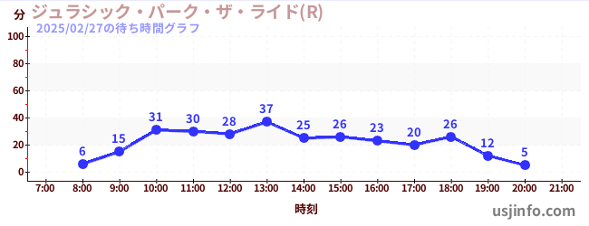 • ジュラシック・パーク・ザ・ライド(R)$B$N(B2025年02月27日の待ち時間