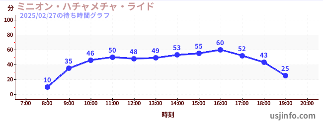 • ミニオン・ハチャメチャ・ライド$B$N(B2025年02月27日の待ち時間