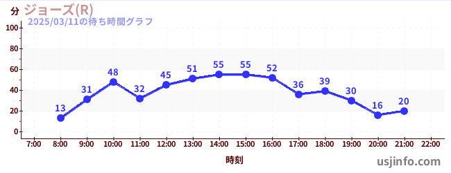 • ジョーズ(R)$B$N(B2025年03月11日の待ち時間
