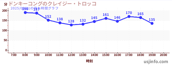 • ドンキーコングのクレイジー・トロッコ$B$N(B2025年03月11日の待ち時間
