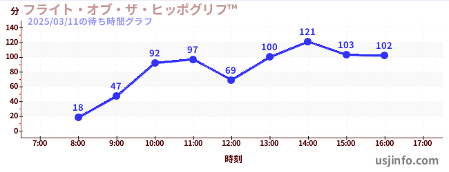 • フライト・オブ・ザ・ヒッポグリフ™$B$N(B2025年03月11日の待ち時間