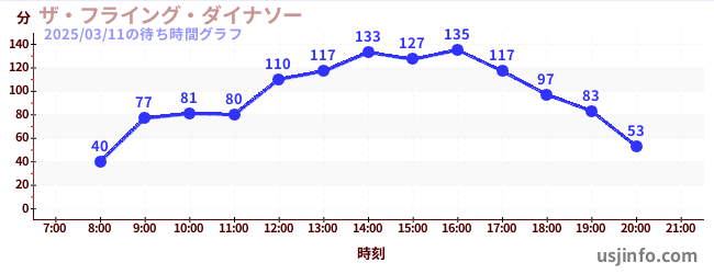 • ザ・フライング・ダイナソー$B$N(B2025年03月11日の待ち時間
