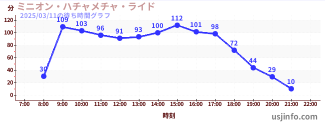 • ミニオン・ハチャメチャ・ライド$B$N(B2025年03月11日の待ち時間
