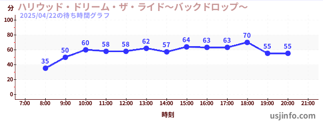 • ハリウッド・ドリーム・ザ・ライド〜バックドロップ〜$B$N(B2025年04月22日の待ち時間