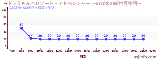 • ドラえもん 4-D アート・アドベンチャー ~のび太の絵世界物語~$B$N(B2025年04月22日の待ち時間