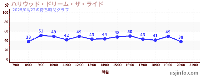 • ハリウッド・ドリーム・ザ・ライド$B$N(B2025年04月22日の待ち時間