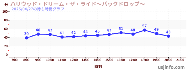 • ハリウッド・ドリーム・ザ・ライド〜バックドロップ〜$B$N(B2025年04月27日の待ち時間