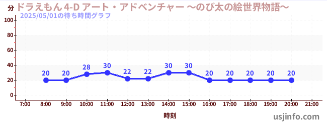 • ドラえもん 4-D アート・アドベンチャー ~のび太の絵世界物語~$B$N(B2025年05月01日の待ち時間