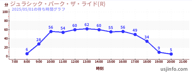 • ジュラシック・パーク・ザ・ライド(R)$B$N(B2025年05月01日の待ち時間