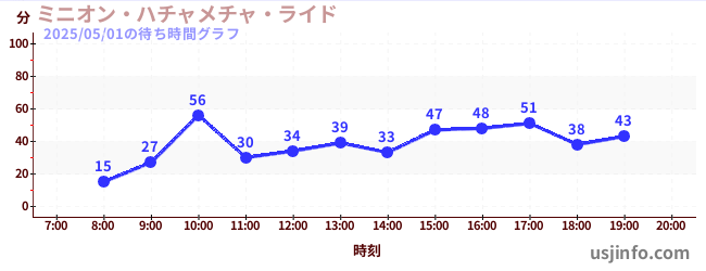 • ミニオン・ハチャメチャ・ライド$B$N(B2025年05月01日の待ち時間