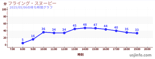 • フライング・スヌーピー$B$N(B2025年05月06日の待ち時間
