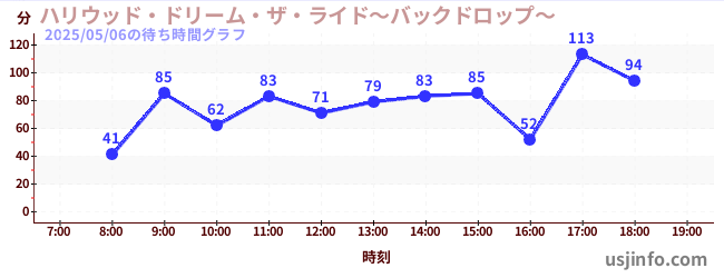 • ハリウッド・ドリーム・ザ・ライド〜バックドロップ〜$B$N(B2025年05月06日の待ち時間