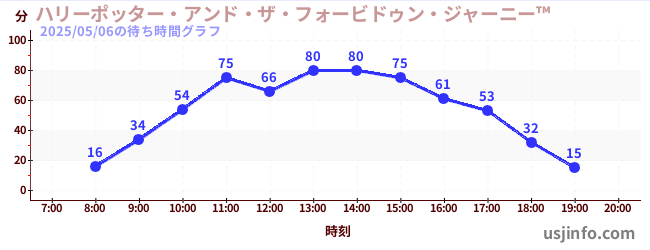 • ハリーポッター・アンド・ザ・フォービドゥン・ジャーニー™$B$N(B2025年05月06日の待ち時間