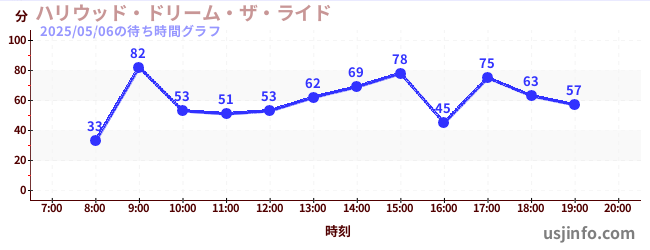 • ハリウッド・ドリーム・ザ・ライド$B$N(B2025年05月06日の待ち時間