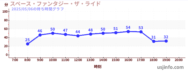 • スペース・ファンタジー・ザ・ライド$B$N(B2025年05月06日の待ち時間