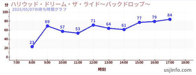 • ハリウッド・ドリーム・ザ・ライド〜バックドロップ〜$B$N(B2025年05月07日の待ち時間
