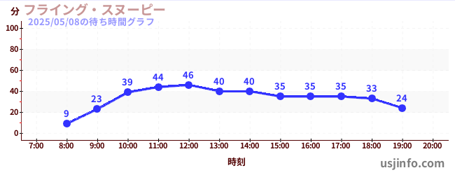 • フライング・スヌーピー$B$N(B2025年05月08日の待ち時間