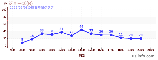 • ジョーズ(R)$B$N(B2025年05月08日の待ち時間