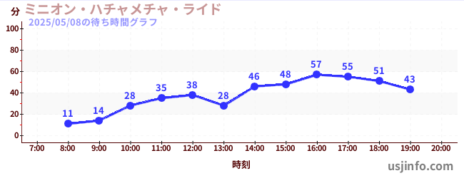 • ミニオン・ハチャメチャ・ライド$B$N(B2025年05月08日の待ち時間