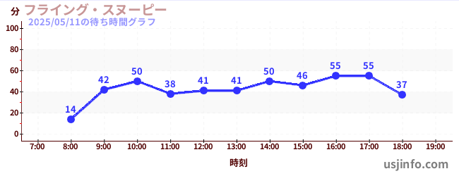 • フライング・スヌーピー$B$N(B2025年05月11日の待ち時間