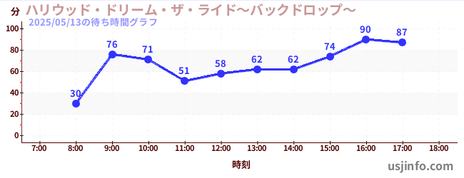 • ハリウッド・ドリーム・ザ・ライド〜バックドロップ〜$B$N(B2025年05月13日の待ち時間