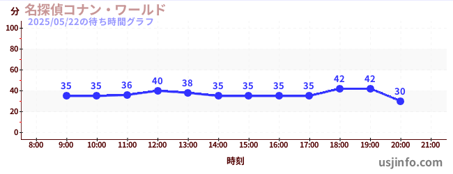 • 名探偵コナン・ワールド$B$N(B2025年05月22日の待ち時間
