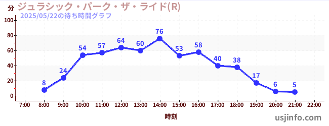• ジュラシック・パーク・ザ・ライド(R)$B$N(B2025年05月22日の待ち時間