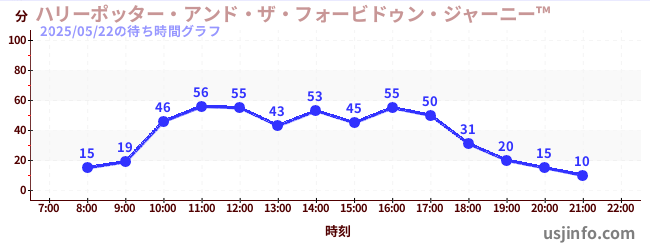 • ハリーポッター・アンド・ザ・フォービドゥン・ジャーニー™$B$N(B2025年05月22日の待ち時間