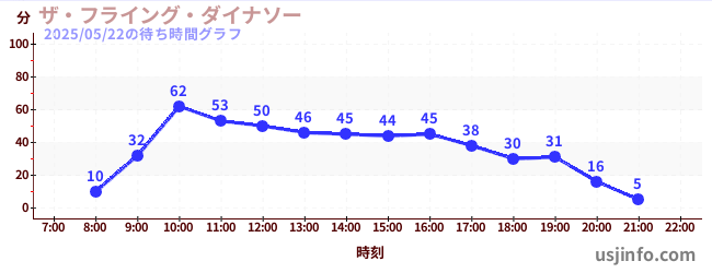 • ザ・フライング・ダイナソー$B$N(B2025年05月22日の待ち時間