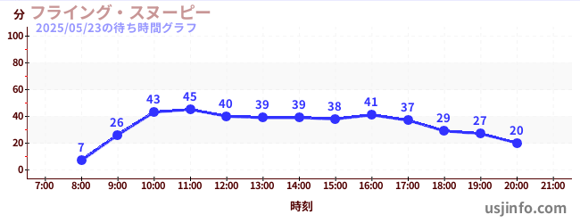 • フライング・スヌーピー$B$N(B2025年05月23日の待ち時間