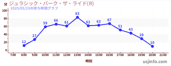 • ジュラシック・パーク・ザ・ライド(R)$B$N(B2025年05月23日の待ち時間
