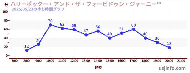 • ハリーポッター・アンド・ザ・フォービドゥン・ジャーニー™$B$N(B2025年05月23日の待ち時間