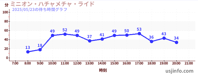• ミニオン・ハチャメチャ・ライド$B$N(B2025年05月23日の待ち時間