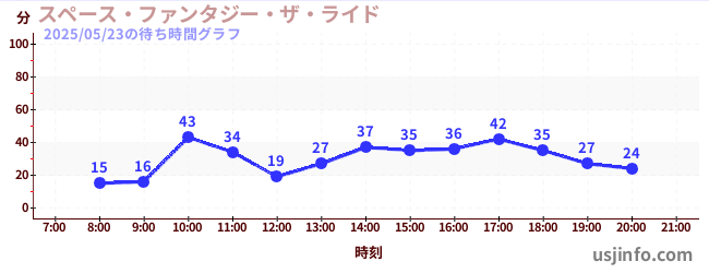 • スペース・ファンタジー・ザ・ライド$B$N(B2025年05月23日の待ち時間