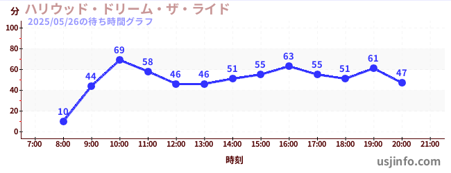 • ハリウッド・ドリーム・ザ・ライド$B$N(B2025年05月26日の待ち時間