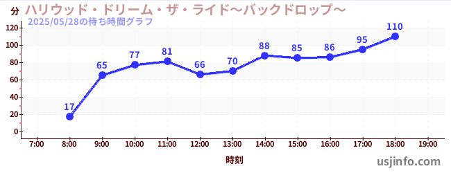 • ハリウッド・ドリーム・ザ・ライド〜バックドロップ〜$B$N(B2025年05月28日の待ち時間