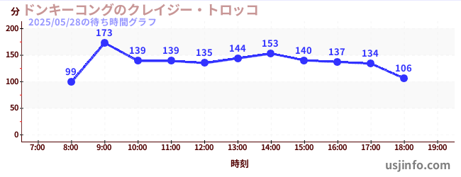 • ドンキーコングのクレイジー・トロッコ$B$N(B2025年05月28日の待ち時間