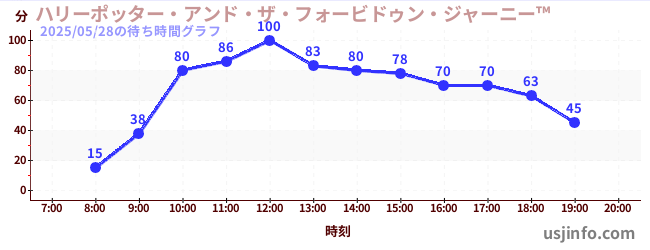 • ハリーポッター・アンド・ザ・フォービドゥン・ジャーニー™$B$N(B2025年05月28日の待ち時間