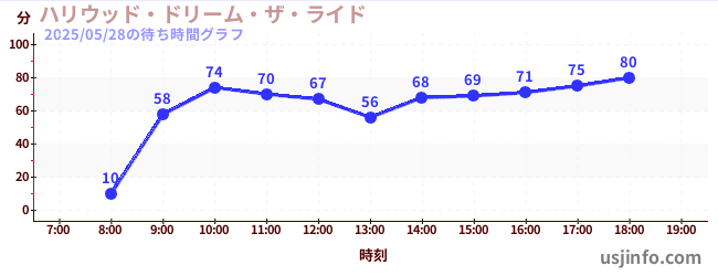 • ハリウッド・ドリーム・ザ・ライド$B$N(B2025年05月28日の待ち時間