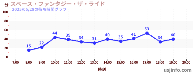 • スペース・ファンタジー・ザ・ライド$B$N(B2025年05月28日の待ち時間