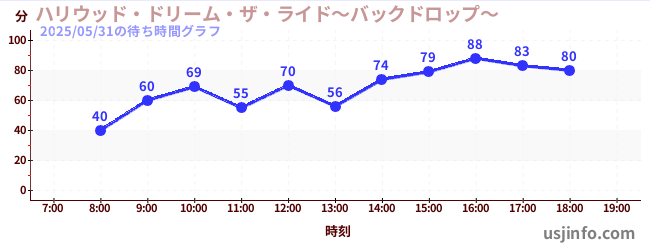 • ハリウッド・ドリーム・ザ・ライド〜バックドロップ〜$B$N(B2025年05月31日の待ち時間