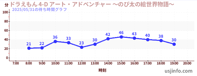 • ドラえもん 4-D アート・アドベンチャー ~のび太の絵世界物語~$B$N(B2025年05月31日の待ち時間