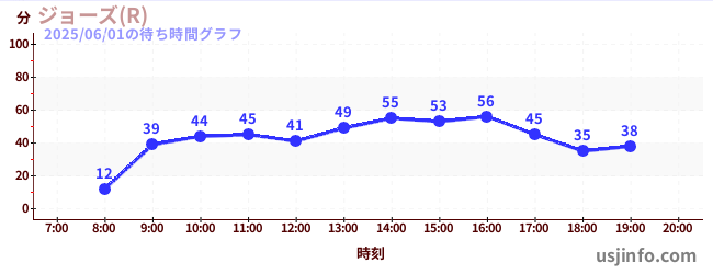 • ジョーズ(R)$B$N(B2025年06月01日の待ち時間