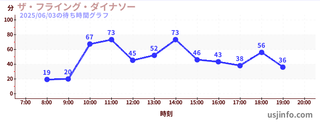 • ザ・フライング・ダイナソー$B$N(B2025年06月03日の待ち時間